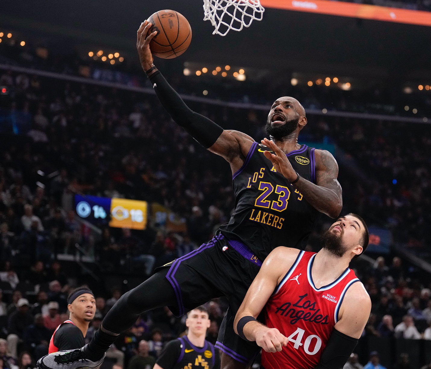 开场小卡的竞技状态很好连拿8分,拉拉维亚也命中两个三分球,两队的进攻都很流畅。乔丹-米勒与哈登也连续命中三分球,快船很快拉开到6分的差距,东契奇持球撤步三分球命中,米勒单打范德彪得手,八村三分不中,哈登反击上进打停湖人。好在八村命中一个压哨的三分球湖人缩小到个位数的分差进入次节。